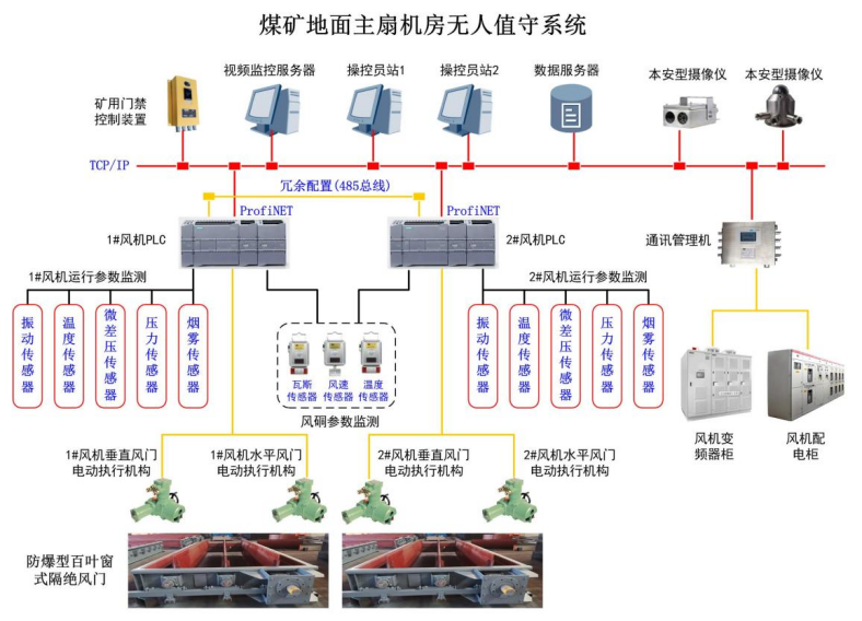 该系统主要由工控机+组态软件、PLC控制主站+操作台、智能数据监测采集单元等组成。系统设计符合国家有关标准,是实时智能化在线检测和控制设备,可以连续地测量和监视主扇风机系统的运行状态,早期发现风机系统技术指标差异和电机及零部件故障,风机性能指标差异,电机过载,电机不平衡、轴承过温和失效、电机供电缺相,电机瞬间过流以及零部件参数和控制等提供重要信息。 系统通过工控计算机和可编程控制器PLC,提供可靠的控制和显示机械和电气设备运行信息,控制风机设备开停和倒机,控制风机设备电机的运转方向;控制气体流量风道选择;检测和显示系统设备运行状态;检测和显示电机轴承温度和转速;检测和显示电机运转三相电压和电机功率;检测和显示气体流量和压力及风速和流体温度;计算和显示设备使用效率和风机性能特性和曲线;处理设备故障警戒报警和声响报警等。 通过煤矿主扇风机监测监控系统系统对设备实施远程控制和检测,可以连续地测量和监视机器的运行状态;可通过计算机或手动按钮对设备开停控制,对设备状态进行量化控制;可对设备进行故障诊断,对设备异常情况进行瞬间保护和恢复;对设备系统重大事故进行急停,避免设备遭受重大损失;同时根据管理方式打印各类数据报表。设备操作和管理可通过现场管理和远程管理实施。 |